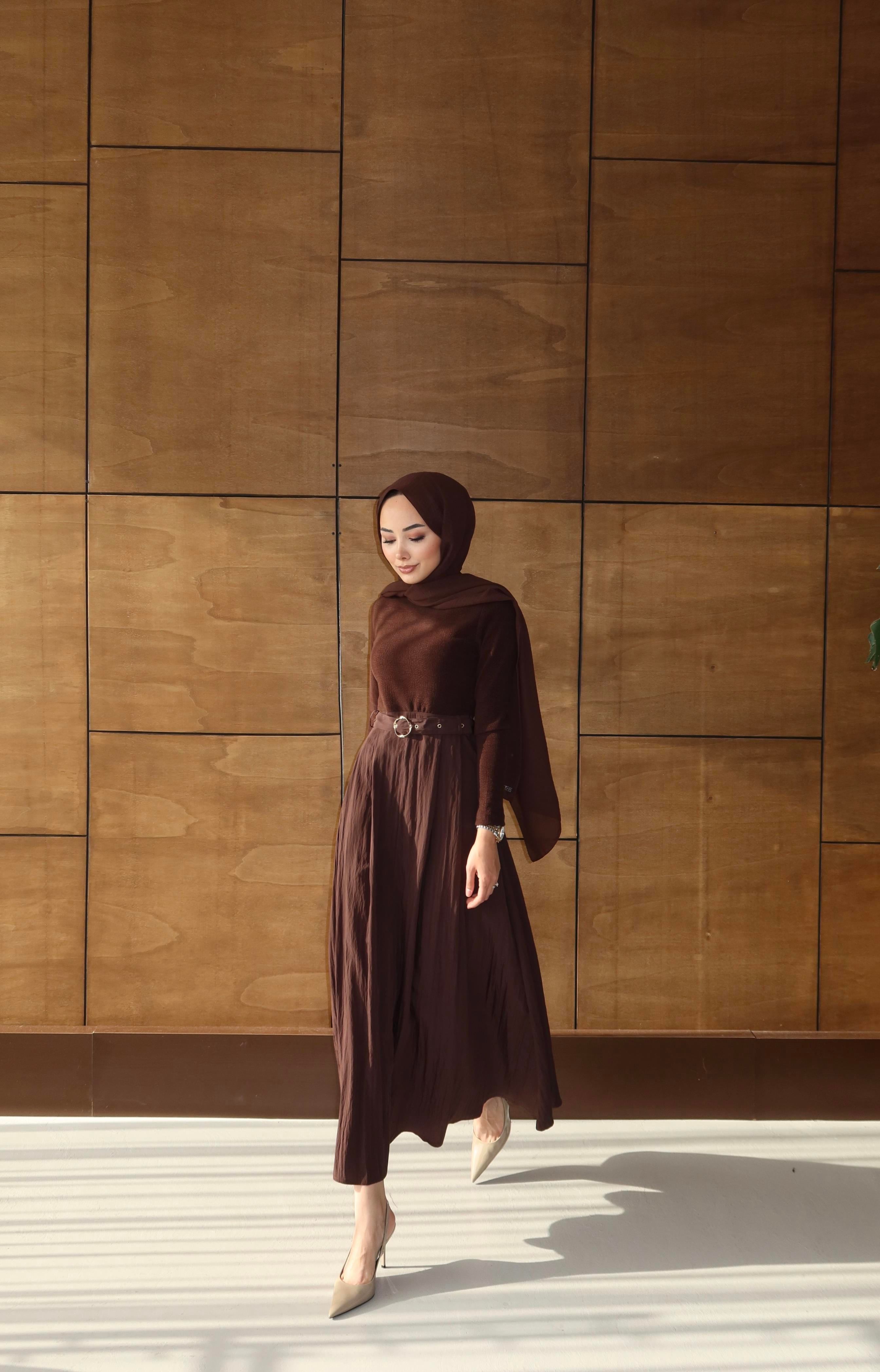ALİNA KEMERLİ ELBİSE KAHVERENGİ