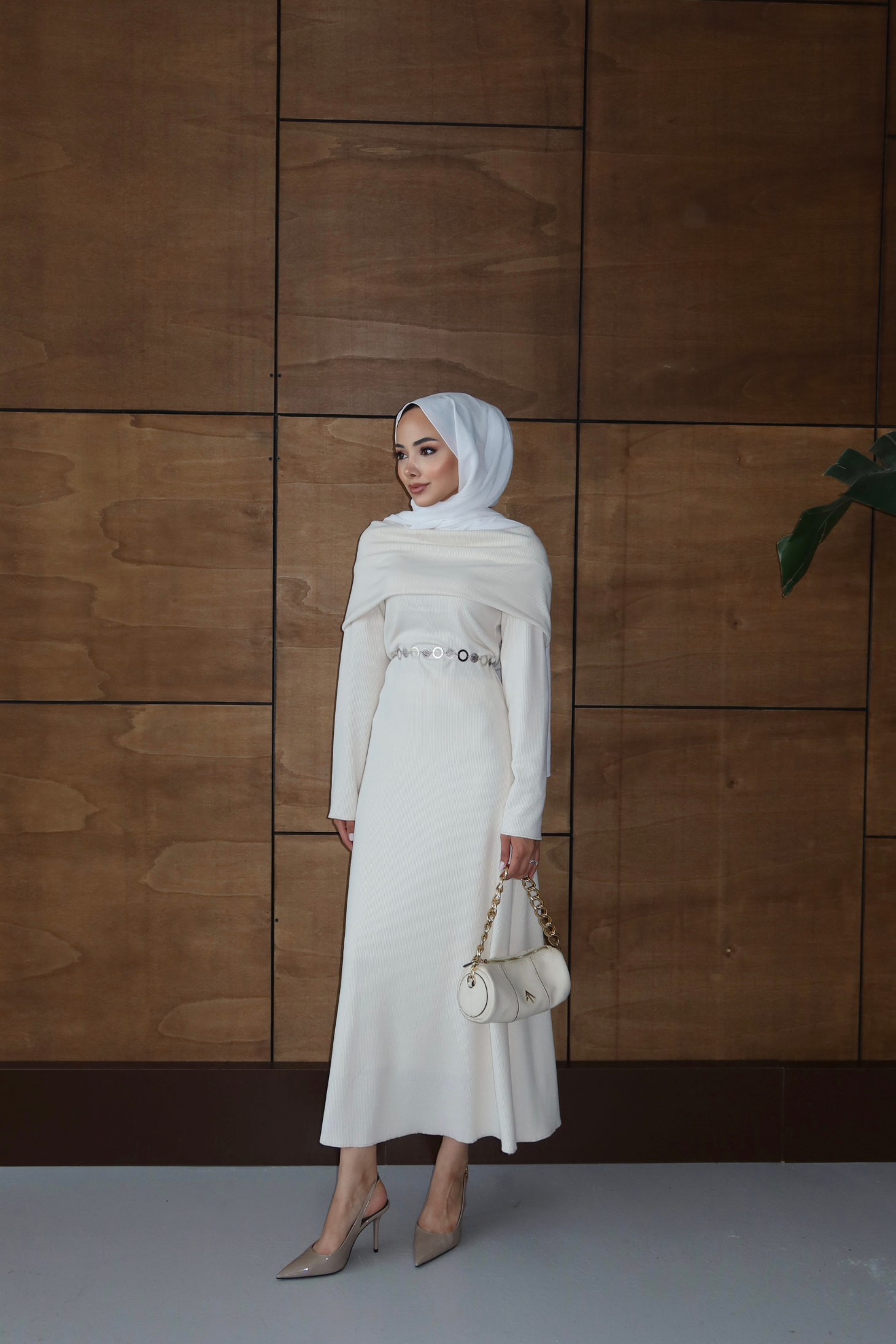 Triko kumaş Ürün boy:1.38cm Zincir kemer mevcut. Omuz yaka detayı seyyardır, iç elbiseyi düz bir şekilde de tercih edebilirsiniz.