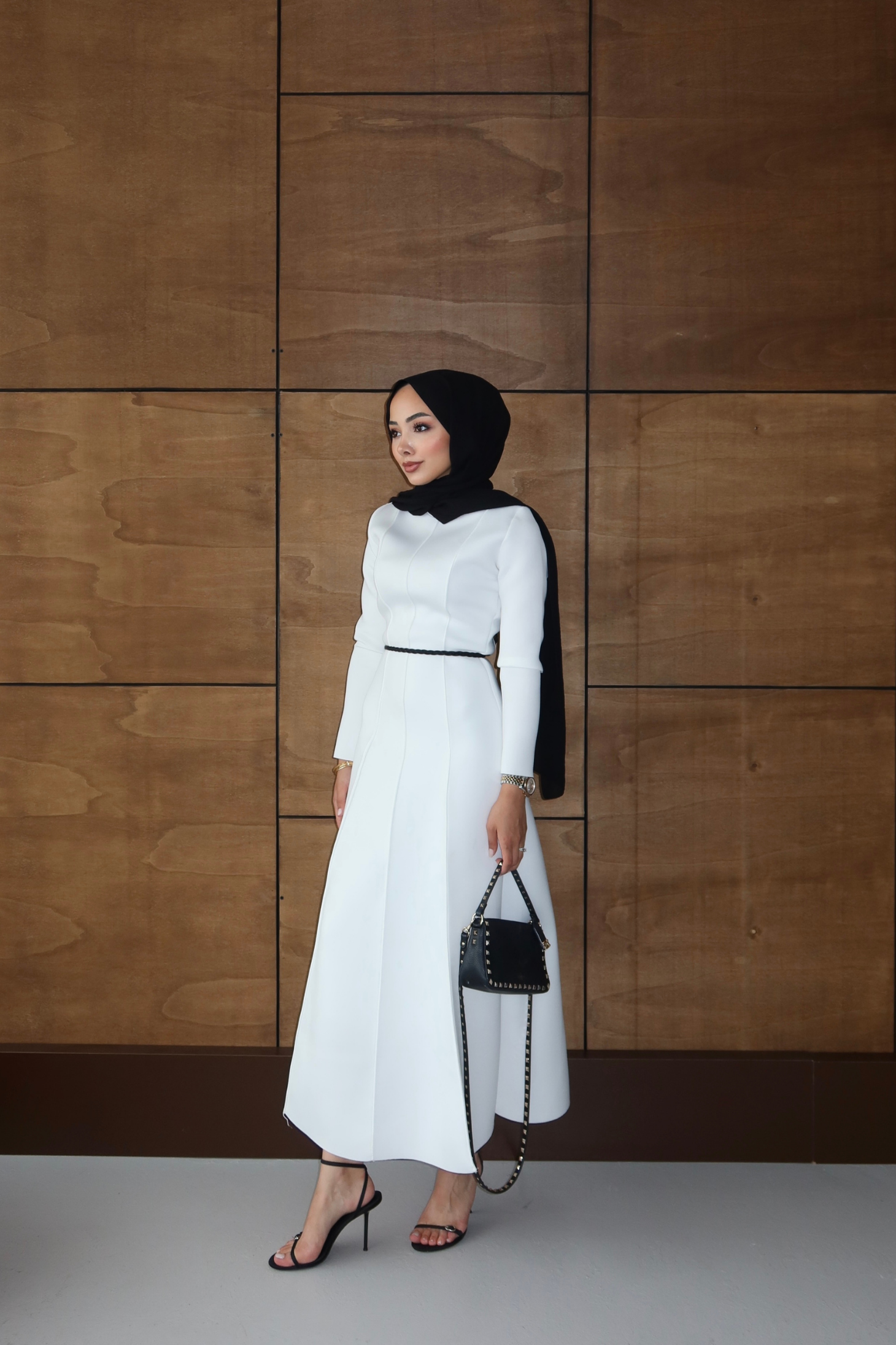 Puf kumaş Ürün boy-135cm Arkadan yarım fermuar detaylı İç göstermez Siyah deri örgü kemer mevcut.