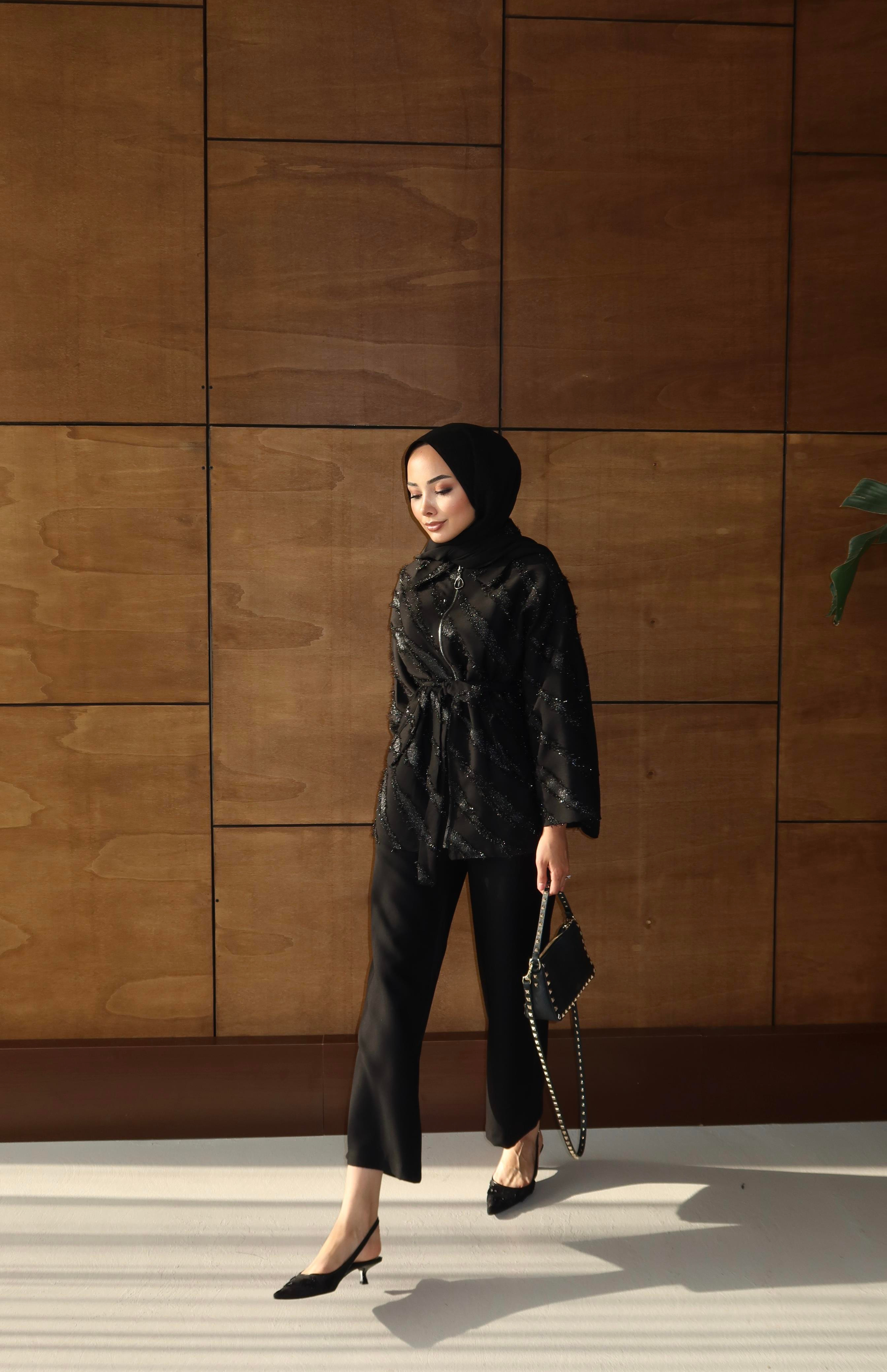 SİMLİ PANTOLONLU TAKIM SİYAH